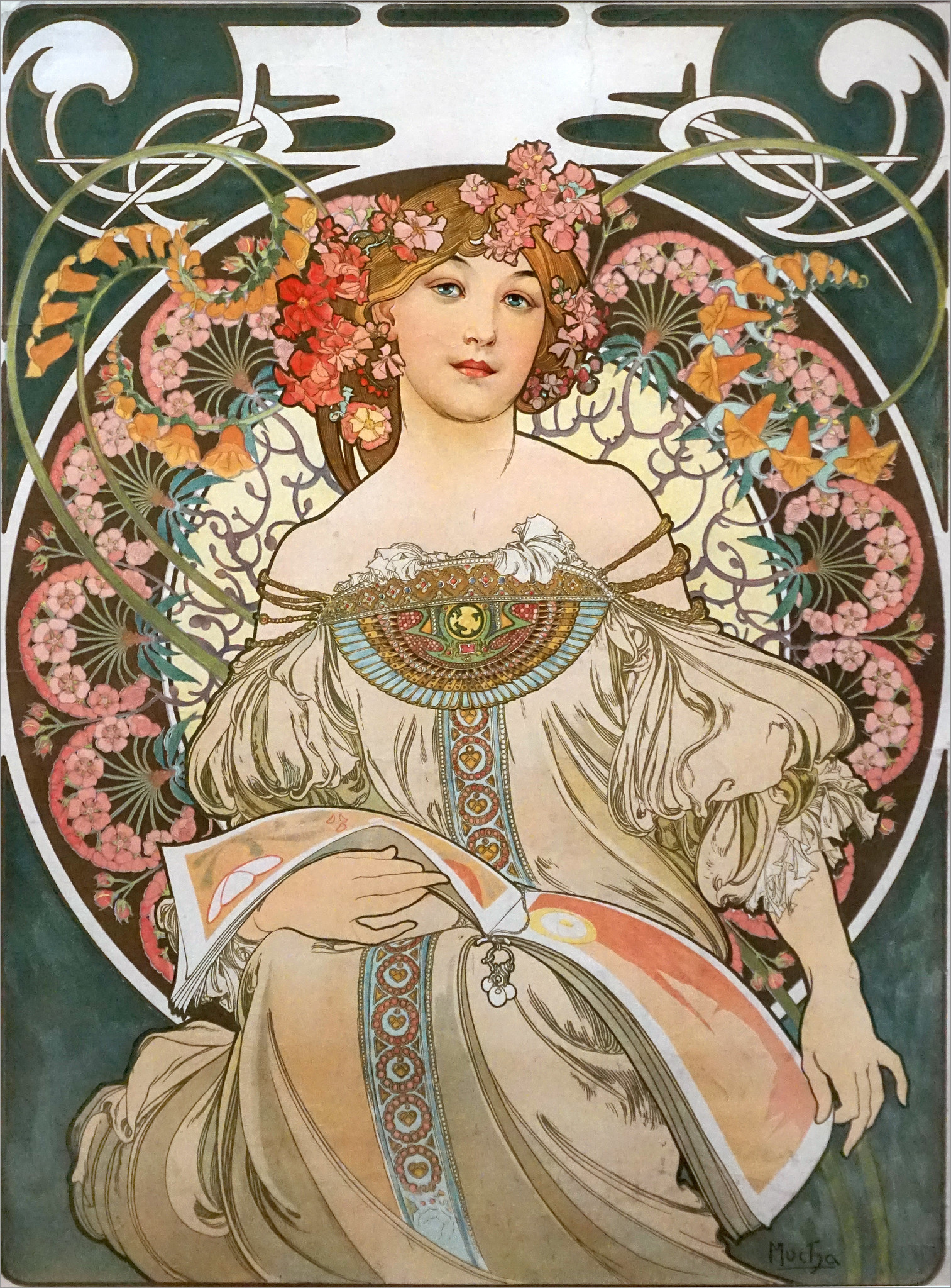 la grande actrice Sarah Bernhardt. Passionné par les arts populaires, Mucha s’intéresse
