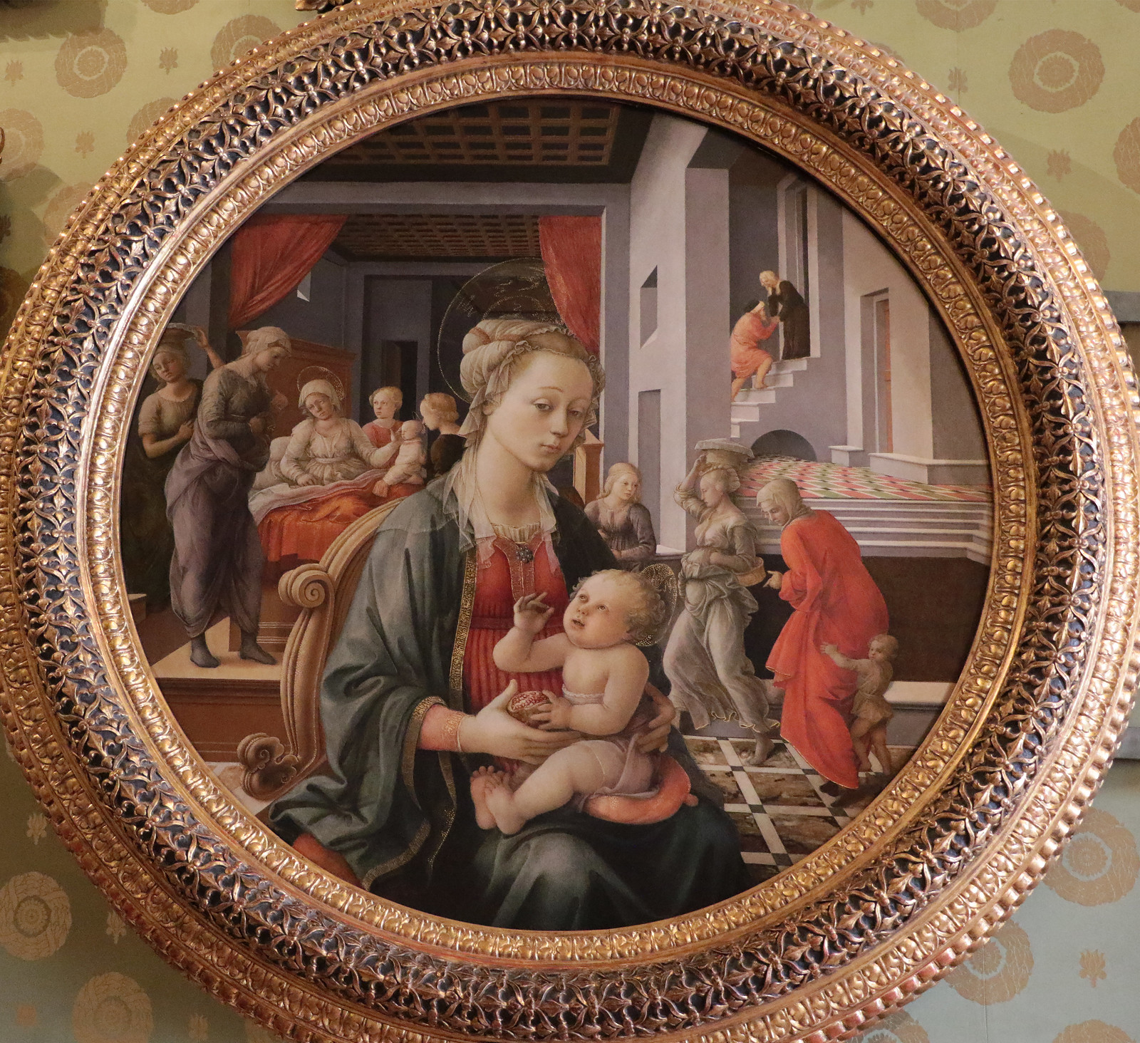 La composition et l'utilisation de la couleur de la Lippina sont innovantes : le groupe est placé devant un cadre représentant un paysage se développant jusqu'à la ligne d'horizon, principe pictural directement inspiré de la peinture flamande. Au premier plan, la Vierge finement auréolée, le visage de profil, orienté vers la droite, est assise sur un siège. Sa coiffure est très élaborée, avec des voiles à peine perceptibles et des perles. La Lippina serait le portrait de Lucrezia Buti, la religieuse carmélite qui posait comme modèle.
